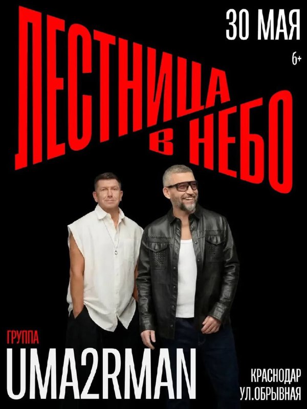 На сцене фестиваля «Лестница в небо» выступит Uma2rman ⚡️ Группа братьев Кристовских — авторы хитов, которые любят миллионы: «Прасковья», «Проститься», «Кажется» и «Ума Турман». Мы рады приветствоват