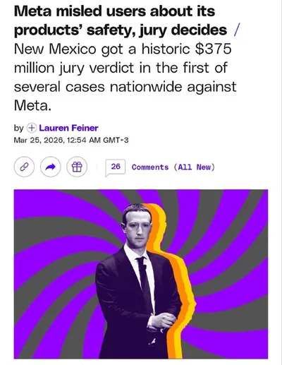 Meta* проиграла суд и получила штраф $375 МИЛЛИОНОВ — на эти деньги можно купить по Айфону каждому петербуржцу. Жюри в Нью-Мексико признало, что компания нарушила закон штата, вводя пользователей в за