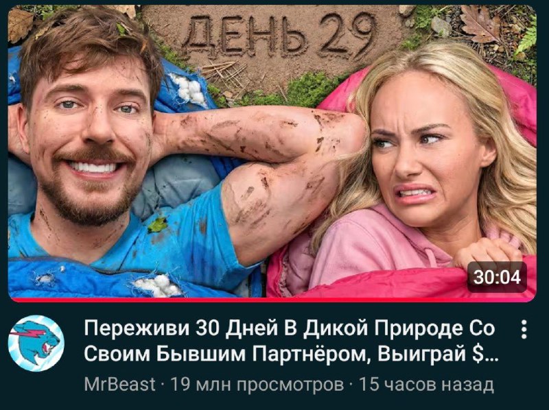 MrBeast выпустил видео, в котором парню нужно было прожить 30 дней в лесу с 5 своими бывшими. Есть один нюанс — в конце одна из девушек может забрать себе все его деньги, оставив ни с чем. @kreole