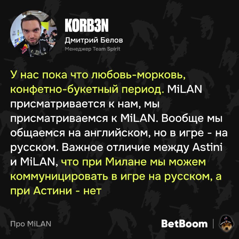 Korb3n прокомментировал выбор MiLAN'а на позицию тренера в 🐲Team Spirit 💃 Также Диман добавил, что нового коача они взяли не только на время ♋️PGL Wallachia Season 7 🥺 Забыл вчера сделать эту гол