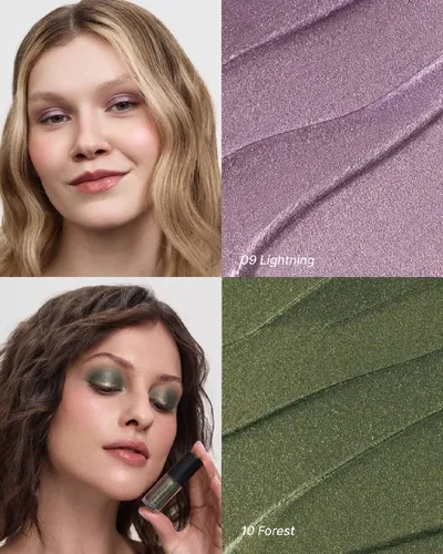 Для зеленых глаз 🍃 Природный магнетизм зеленых глаз лучше всего подсвечивают холодные розово-фиолетовые или насыщенные хвойные оттенки. В нашей новой коллекции теней это 09 Lightning, 10 Forest и
