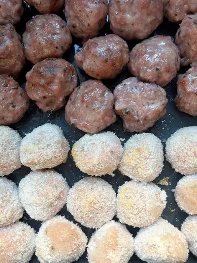 Найдены лучшие конфетки для дефицита! Мясные шарики из фарша (говядина или курица — у меня тут два вида). Да, раньше я не любила фарш. Но вкусы, как оказалось, меняются. В одной штуке: 22 г, 30 ккал