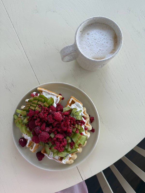 Мои #тарелки на восстановлении ЖЭ КА ТЭ Завтрак: Вафли без лактозы и глютена с киви, малиной и йогуртом б/л (рецепт напишу в описании) Обед: курица в аэрогриле без масла + гречка + романо, перец, р