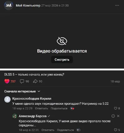 Уже несколько недель у ВК проблемы с загрузкой и обработкой видео. Видимо подорожание памяти ударило и по отечественным, суверенным серверам. Нужно пригласить священника и окропить их святой водой.