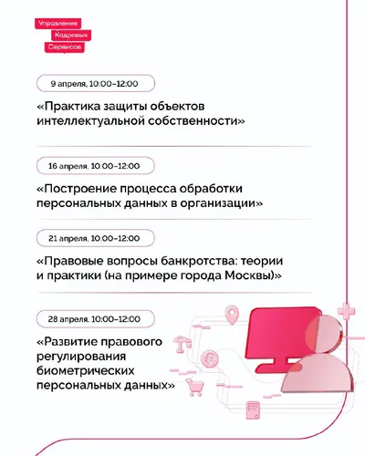Апрель: расписание открытых вебинаров по правовым вопросам для сотрудников команды Москвы 📌 Присоединяйтесь к онлайн-встречам с профильными столичными экспертами! Они поделятся практическими знаниям