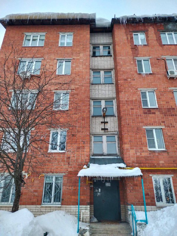 ⚠️ Помогите предотвратить трагедию! Адрес: 2 микрорайон, дом 33. Над входом в подъезд с крыши нависла огромная глыба льда и длинные сосульки. Всё это висит прямо над дверью, через которую ежедневно пр