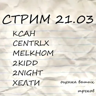 🎮 СТРИМЧИК С ОЦЕНКОЙ ВАШИХ ТРЕКОВ 21.03 СОВМЕСТНО С centrlx 2night 2kidd melkhom ксан кидайте ваши треки под этот пост в комментарии или в лс @li4kahelti НАЧАЛО: 19:00 мск твич - https://www.twit