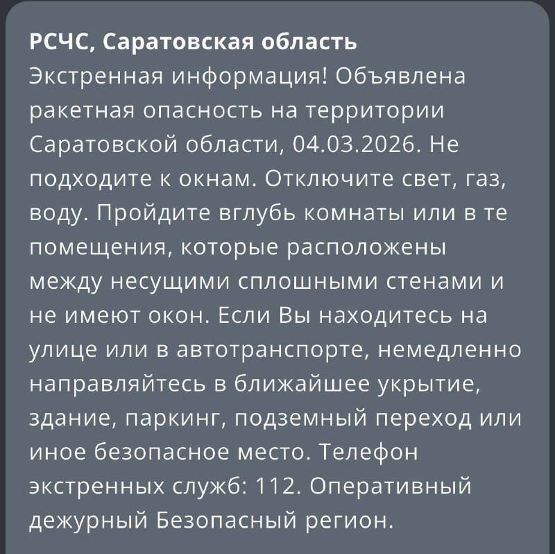 ❗️Ракетную опасность объявили в Саратовской области Об этом сообщает региональное МЧС. Найдите укрытие в помещении без окон со сплошными стенами. Если вы на улице или в транспорте, то направляйтесь