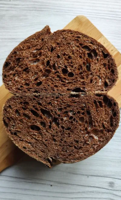 "Черный бархат" подовый в исполнении Натальи Берестовой! Любоваться всем!❤️ Разрез хлеба утренний. И невозможно остановиться на двух кусочках, уж простит меня моя талия. 😁