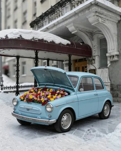 🔥У Центральной гостиницы появится красивая фотозона — но только на один день 😍 6 марта к входу в Центральной гостиницы привезут небесно-голубой «Запорожец» 1967 года из коллекции Музейный комплекс