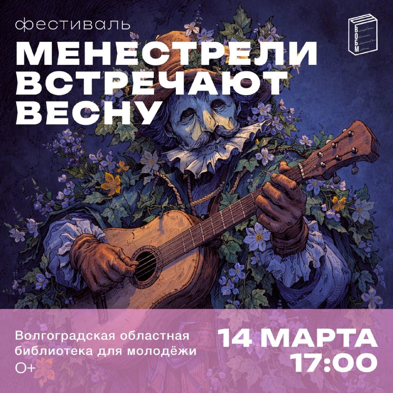 Гитарник «Менестрели встречают весну» ⏰14 марта (сб), в 17:00 📍Волгоградская библиотека для молодежи, ул. Череповецкая, 1 💵Вход свободный На гитарник «Менестрели встречают весну» пригласили волгог
