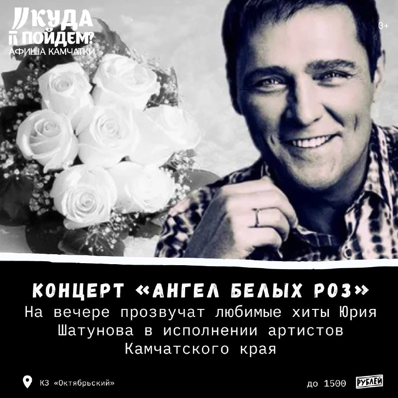 🌹 Что посетить? #22марта Куда пойдём? Афиша Камчатки сообщает о проведении вечера памяти, посвящённого творчеству Юрия Шатунова «Ангел белых роз» (0+) Воскресенье, 22 марта в 17:00 КЗ «Октябрьский