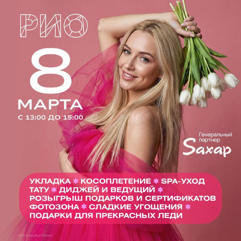 Бьюти день в ТРЦ «РИО» 🗓 8 марта с 13:00 -15:00 - Бьюти-локация: укладка волос, косоплетение и тату - CПА - процедуры для рук - Угощение сладкой ватой* - Весенняя фотозона - Подарки для прекрасных
