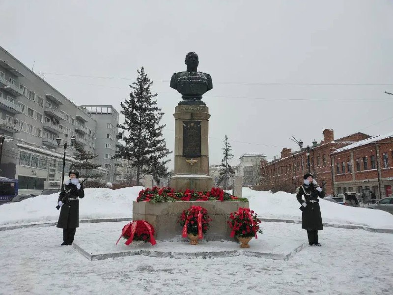 Сегодня в Новосибирске почтили память легендарного лётчика, трижды Героя Советского Союза Александра Ивановича Покрышкина. В этом году со дня его рождения — 113 лет. Возложили цветы к памятнику нашем