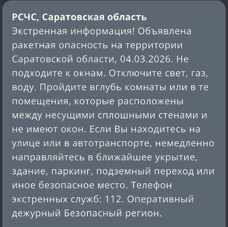 ❗️ «Ракетную опасность» объявили в соседней Саратовской области Жителей попросили сохранять спокойствие, избегать открытых пространств и не подходить к окнам. В аэропорту ввели план «Ковер». ‼️ Н