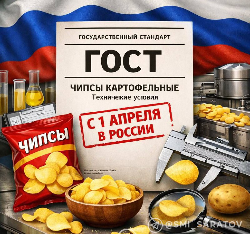 🍔 ГОСТ на чипсы введут с 1 апреля в России Росстандарт утвердил правило, которое впервые установит единые требования к качеству картофельных снеков. Документ будет регулировать состав, внешний вид и