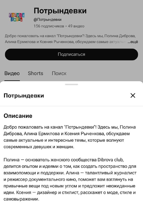 С удивлением узнала, что у Полины Дибровой есть свое шоу на ютюбе с максимально упоротым названием «Потрындевки», которое она ведет с двумя подружайками. На канал подписано всего 156 человек, а темы в