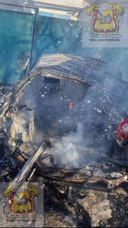 Противник нанес удар с применением БПЛП по АЗС в городе Рыльске Курской области. Пострадавших нет. Сгорел гражданский автомобиль. Жесть Курск - подписаться