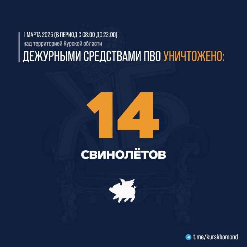 ⚡️14 украинских БПЛА самолётного типа было уничтожено в небе Курской области в период с 08:00 до 23:00. 5 из них — в период с 20:00 до 23:00 📲 Курский Бомондъ в MAX