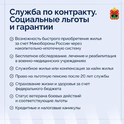 Для поступления на службу можно обратиться в пункт отбора по месту проживания или оставить заявку на сайте службапоконтракту.рф. Требования к кандидату: - быть совершеннолетним; - годным по состоя