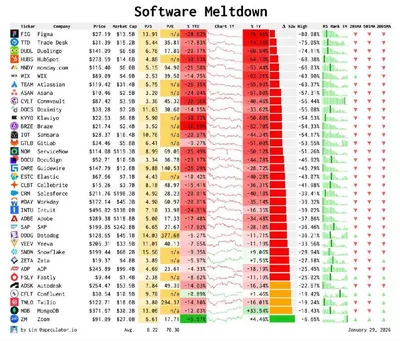 SaaSпокалипсис: плохие новости для айтишников (не будет работы) и фаундеров (не будет экзитов). 1️⃣ С начала года все обсуждают массовое падение капитализаций публичных SaaS-компаний, бизнес которых