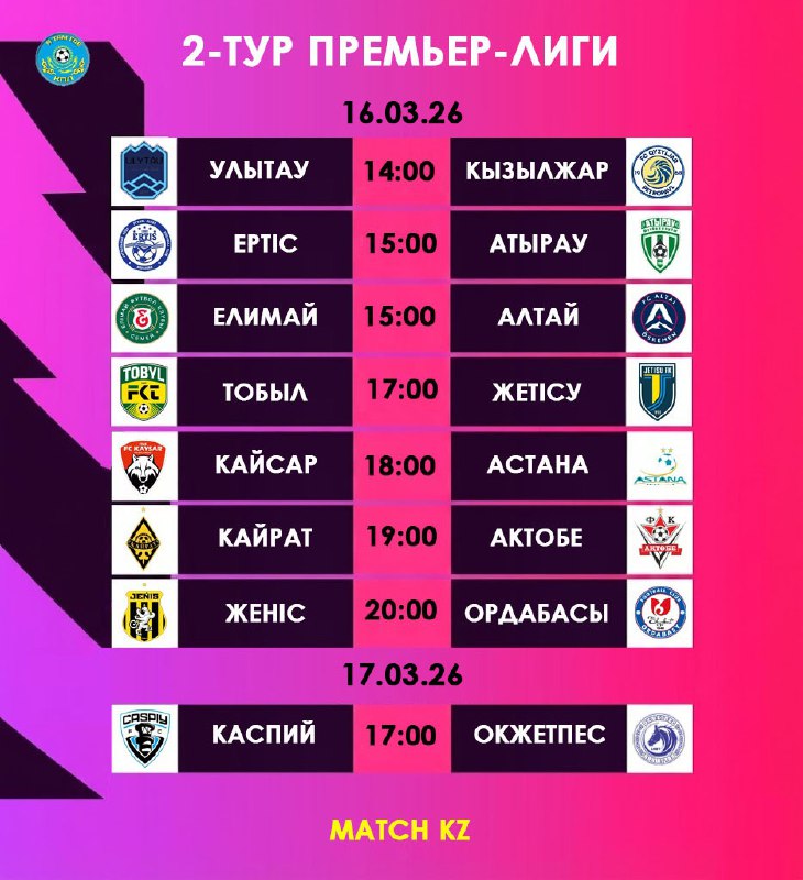 🔥 2-тур КПЛ обещает быть жарким! 😍 В этом туре мы увидим топовый матч «Кайрат» - «Актобе», который состоится на «Центральном» стадионе в г.Алматы.