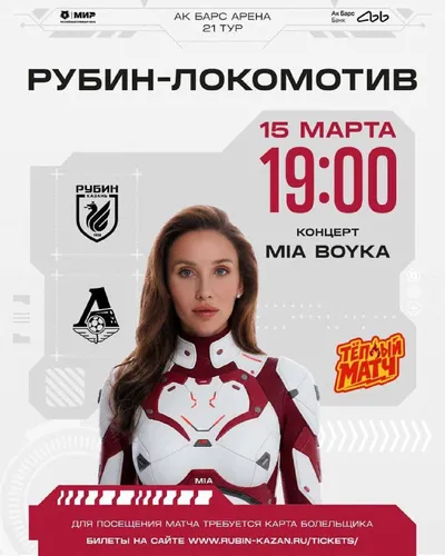Кто на завтра без планов? Можно бесплатно заглянуть на игру Рубин - Локомотив. Еще и бонусом станет концерт MIA BOYKA. Бесплатные билеты оформляем на сайте rubin-kazan.ru/tickets на сектора С119-123