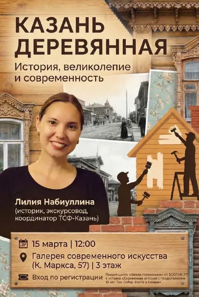Бесплатная лекция в Галерее современного искусства. В это воскресенье 15 марта в 12:00 историк, экскурсовод Лилия Набиуллина выступит на тему: «Казань деревянная. История, великолепие и современност