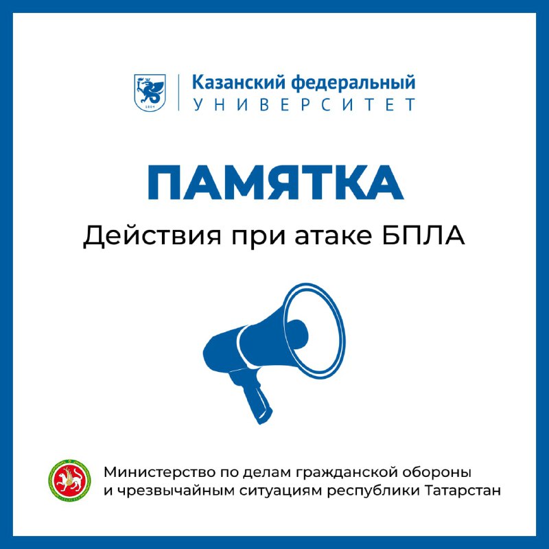 ❗️Студенты, преподаватели, сотрудники Казанского федерального! Для нас ваша безопасность превыше всего. Мы считаем своим долгом напомнить, как вести себя при угрозе атаки БПЛА и ракетной опасности, и