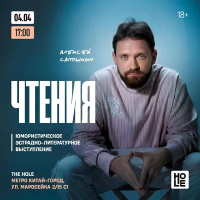 Пропустите, потом не сможете себя простить! Алексей Сапрыкин. Чтения Юмористическое эстрадно-литературное выступление. ▫️Суббота 4.04 Начало в 17:00 ▫️THE H.O.L.E. Маросейка, 2/15с1 ▫️Работают кух