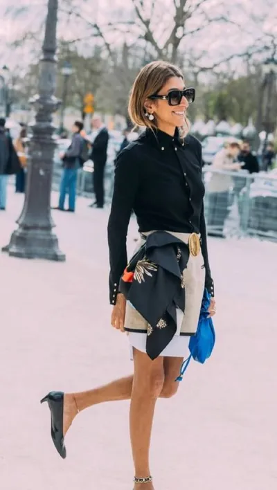Доброе утро!) Для тех, кто продолжает нежно любить платки и всегда в поиске свежих идей для стайлинга. Ramya Giongola на парижской неделе моды (платок, сумка и ремень из новой коллекции Celine Майкла