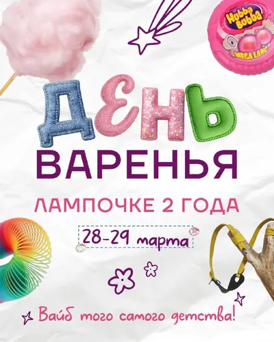 Лампочке 2 года 🥳 В честь этого мы устраиваем большой праздник. На этих выходных мы включаем машину времени и отправляемся на 20 лет назад: в детство, где правят тамагочи, журналы, жвачка Hubba Bubb