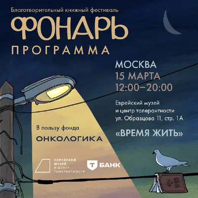 ПРОГРАММА БЛАГОТВОРИТЕЛЬНОГО КНИЖНОГО ФЕСТИВАЛЯ ФОНАРЬ 15 МАРТА В ЕВРЕЙСКОМ МУЗЕЕ И ЦЕНТРЕ ТОЛЕРАНТНОСТИ Тема этого большого весеннего фестиваля — «Время жить», и говорить мы будем о времени, о том,