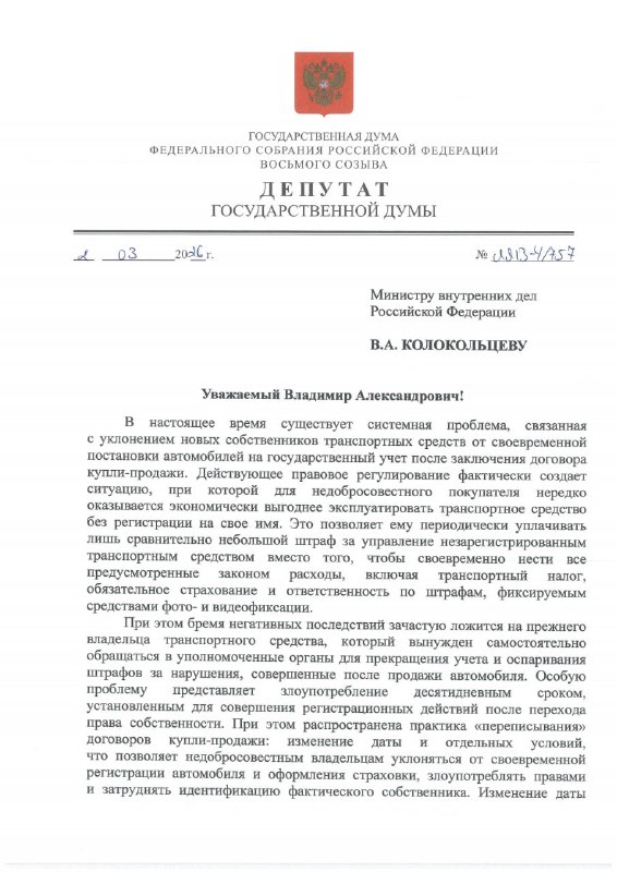 Пора защитить продавцов машин от хитрых мошенников Вместе с Сергеем Мироновым предложили МВД ввести обязательную цифровую фиксацию продажи автомобилей между физлицами — через «Госуслуги». Сегодня не