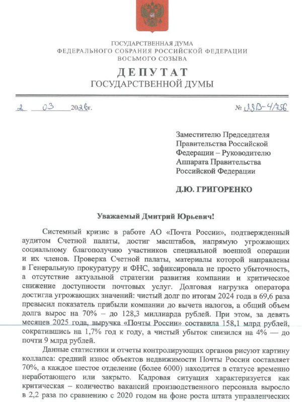 СВОи письма и посылки — без задержек ⁉️ Вместе с лидером «Справедливой России» Сергеем Мироновым обратились к вице-премьеру Дмитрию Григоренко. Предлагаем создать приоритетный канал связи для семей у