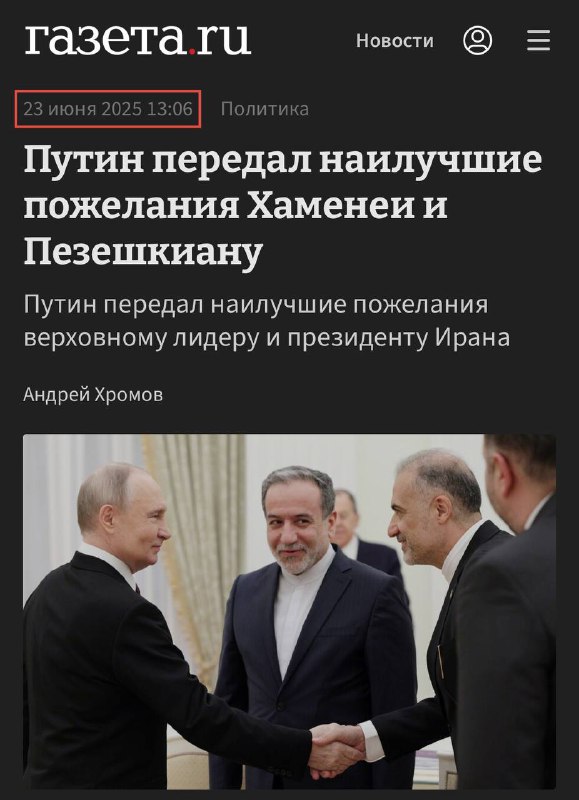 ⚡️Путин поддержал Хаменеи В связи с началом Ирано-Израильской войны российский президент принял иранского министра иностранных дел В качестве поддержки союзника Путин передал следующее послание аято