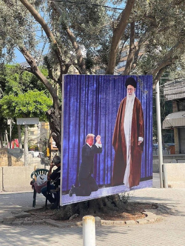 ⚡️В Иране показали превосходство Хаменеи над Трампом В связи с окончанием 12-дневной войны на улицах Тегерана появились новые плакаты На баннерах изображенный в виде карлика президент США умолять ая