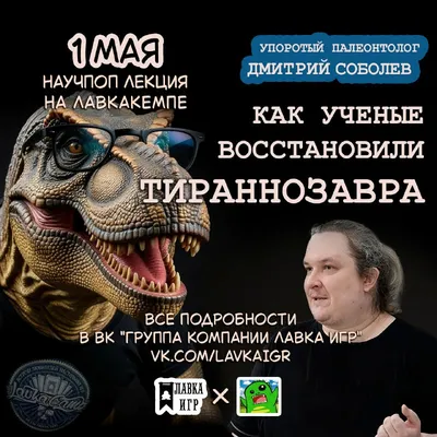 Друзья, к нам на «ЛавкаКемп» едет известный блогер, популяризатор науки, Дмитрий Соболев, он же «Упоротый палеонтолог», с лекцией «Как ученые тираннозавра воскрешали»:) Так как есть вероятность, что
