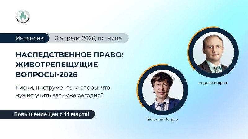 Коллеги, напоминаем, что 3 апреля 2026 года состоится интенсив: «Наследственное право: животрепещущие вопросы — 2026. Риски, инструменты и споры: что нужно учитывать уже сегодня?» ⚠️ Обращаем внимани