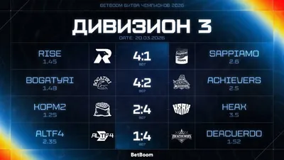 ✍️Итоги игрового дня третьего дивизиона BetBoom Битва Чемпионов 2026! Сенсация не заставила себя ждать — команда HEAX обыграла KOPM2, BetBoom давали коэффициент 3.5 на HEAX🤑 Как вам такой поворот?
