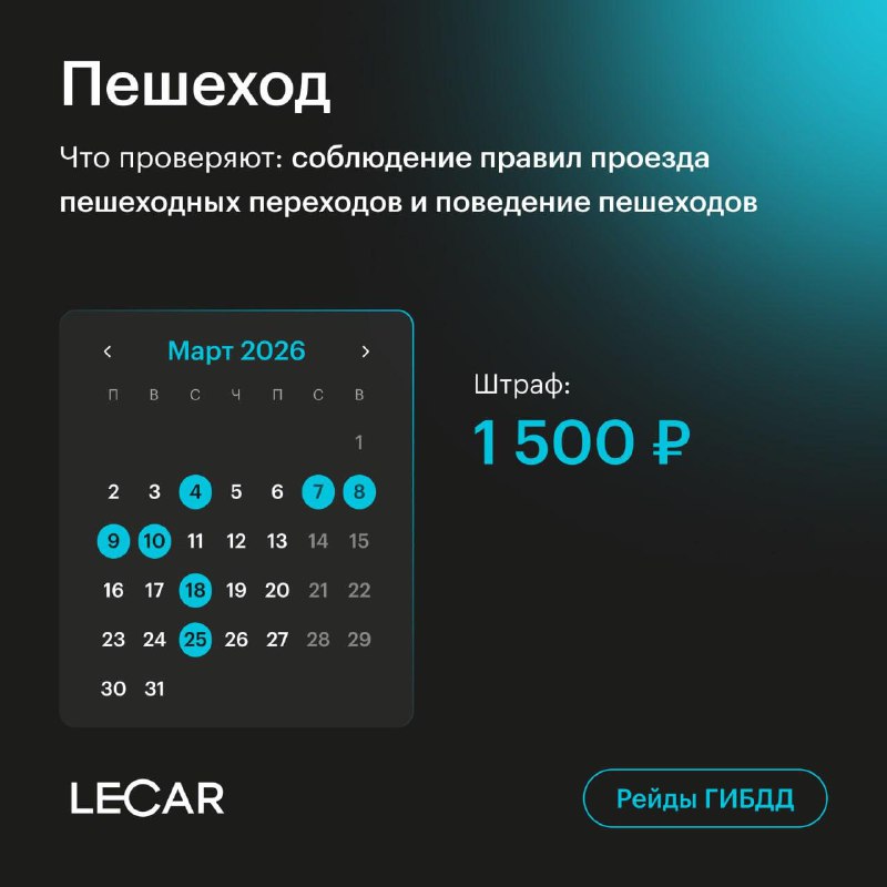 Рейды ГИБДД в марте Проверки будут проходить в течение всего месяца, а по некоторым пунктам - почти каждую неделю. 📍В регионах график может отличаться: где аварийность выше, там рейды проводят чаще