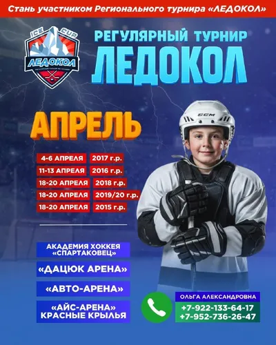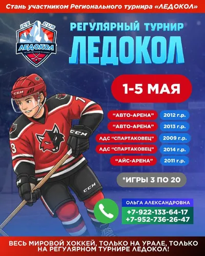 Спорт🏒 РЕГУЛЯРНЫЙ ТУРНИР «ЛЕДОКОЛ» 🏅Детские и юношеские турниры 📍ЕКАТЕРИНБУРГ: «D13 Дацюк Арена», СШ «Красные Крылья», ЛДС «Спартаковец» 📲 Принять участие: +7 (922) 133-64-17 👇🏻 LIVE-ТРАНСЛЯЦИЯ МАТЧЕЙ В ВК https://vk.com/ledokol_hockey