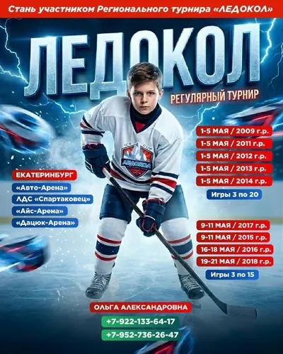 ⚡️ Стань участником Регулярного турнира «ЛЕДОКОЛ»! Май в Екатеринбурге — это время ярких матчей, серьёзной конкуренции и настоящей хоккейной атмосферы. Приглашаем команды принять участие в Регулярном