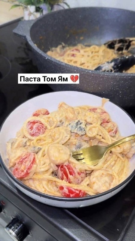 Готовим пасту «Том Ям» — это яркое блюдо с уникальным вкусом! Ингредиенты: Для пасты: 250 г пасты (по вашему выбору: спагетти, лингвини или рисовая лапша) 200 г креветок (очищенных) 150 г грибов (ш