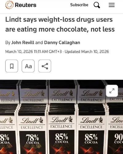 Люди, принимающие препараты для похудения, начинают чаще покупать шоколад — к такому наблюдению пришли в компании Lindt & Sprüngli. По словам производителей, многие худеющие всё равно ищут способ себя