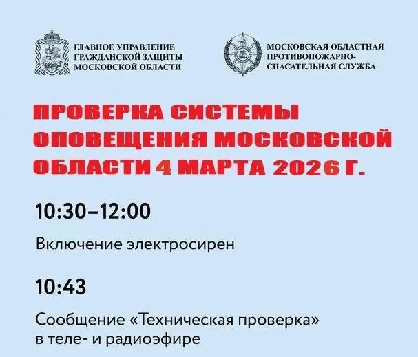 📢 4 марта на территории Московской области пройдет комплексная проверка готовности региональной системы оповещения населения. 🔵 Мы в Max - max.ru/lenta_moskva Лента новостей | Москва Предложить но