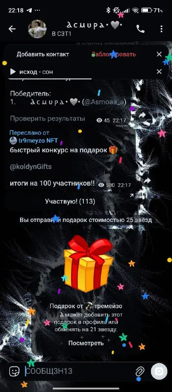 🎁NFT – БЕСПЛАТНО🆓 условие: @lutki_zvezd 🫰Итоги уже сегодня🫰 🎉 Результаты розыгрыша: #1 » Валерий 🔎 Проверить результаты