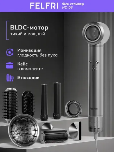 FELFRI Фен стайлер для волос профессиональный мощный с насадками Рейтинг ⭐️⭐️⭐️⭐️⭐️ ✅https://www.wildberries.ru/catalog/550075812/detail.aspx?size=757038652