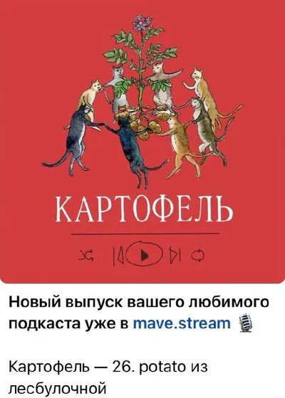 вышел «Картофель» со мной это подкаст так называется🥔 Лена, авторка канала «будни лесбиянки», больше двух лет назад записала со мной этот выпуск, и теперь он появился в открытом доступе. за это вр
