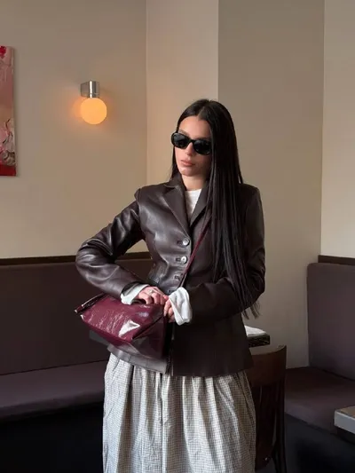 Привет, милые ☀️ За окном долгожданное солнце, но не забываем держать в тепле шею, сердце и спину. Поэтому поверх рубашки — вязаный жилет. С любимыми кожаными миди — свитер с капюшоном. А под деним и